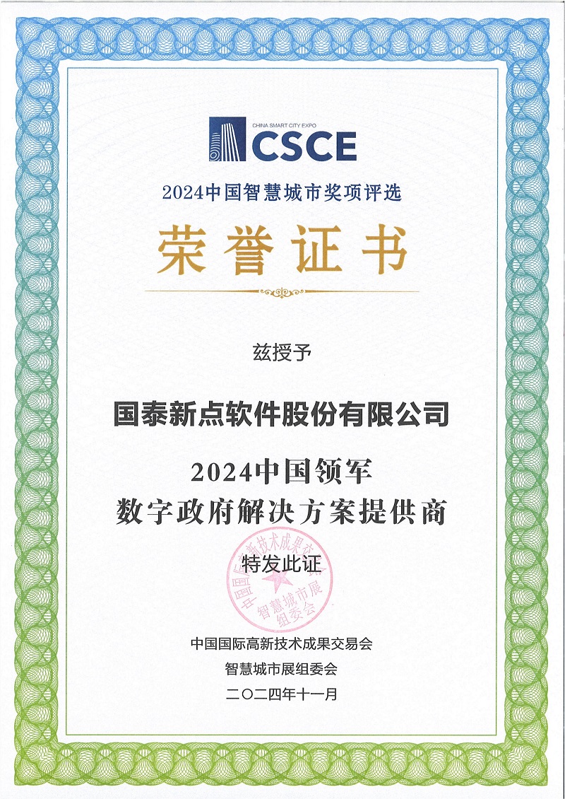 2024年度中國領(lǐng)軍數(shù)字政府解決方案提供商
