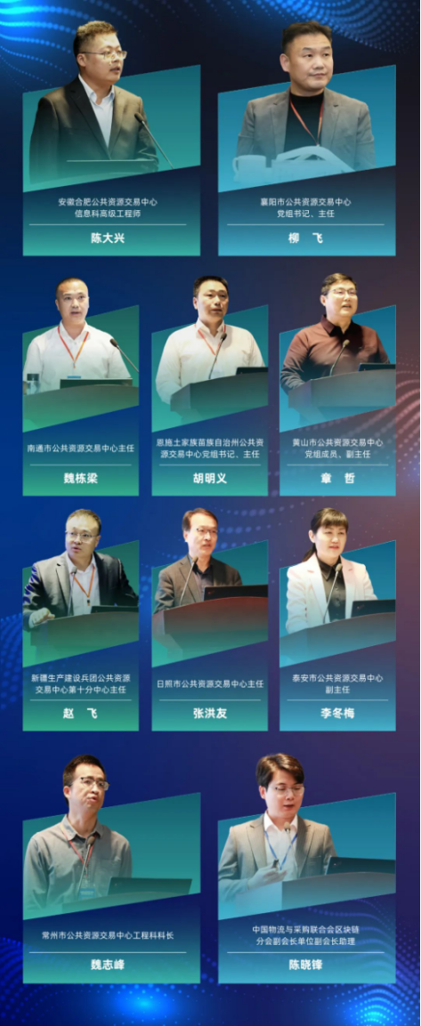 安徽合肥公共資源交易中心信息科高級(jí)工程師陳大興,襄陽市公共資源交易中心黨組書記、主任柳飛,南通市公共資源交易中心主任魏棟梁,恩施土家族苗族自治州公共資源交易中心黨組書記、主任胡明義,黃山市公共資源交易中心黨組成員、副主任章哲,新疆生產(chǎn)建設(shè)兵團(tuán)公共資源交易中心第十分中心主任趙飛,日照市公共資源交易中心主任張洪友,泰安市公共資源交易中心副主任李冬梅,常州市公共資源交易中心工程科科長(zhǎng)魏志峰,中國(guó)物流與采購聯(lián)合會(huì)區(qū)塊鏈分會(huì)副會(huì)長(zhǎng)單位副會(huì)長(zhǎng)助理陳曉鋒分別圍繞在智慧招采行業(yè)的創(chuàng)新實(shí)踐分享了經(jīng)驗(yàn)心得。舉行業(yè)之力,推進(jìn)公共資源交易服務(wù)水平和能力現(xiàn)代化,實(shí)現(xiàn)公共服務(wù)“質(zhì)”“效”雙提升。